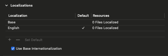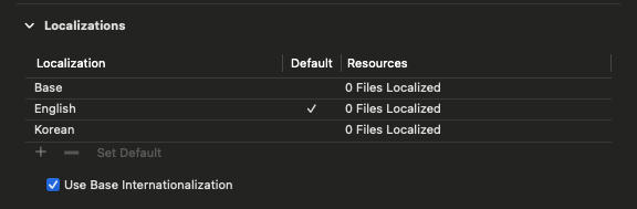 그리고 하단을 보면 다음과 같이 Localizations 리스트가 있을 것이다.